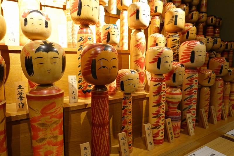 展示コーナーに足を踏み入れると、そこには多種多様なこけしがずらり!先に述べた「遠刈田系伝統こけし」、白石の弥治郎地区で誕生した「弥治郎系伝統こけし」、鳴子温泉の名産品となっている「鳴子系伝統こけし」、山形・仙台で発展した「作並系伝統こけし」といった宮城伝統こけしをはじめ、全国の伝統こけしや木地玩具など、普段はなかなか見られないユニークな一品が飾られています。その総数はなんと約5,500点!世界一の展示数を誇ります。