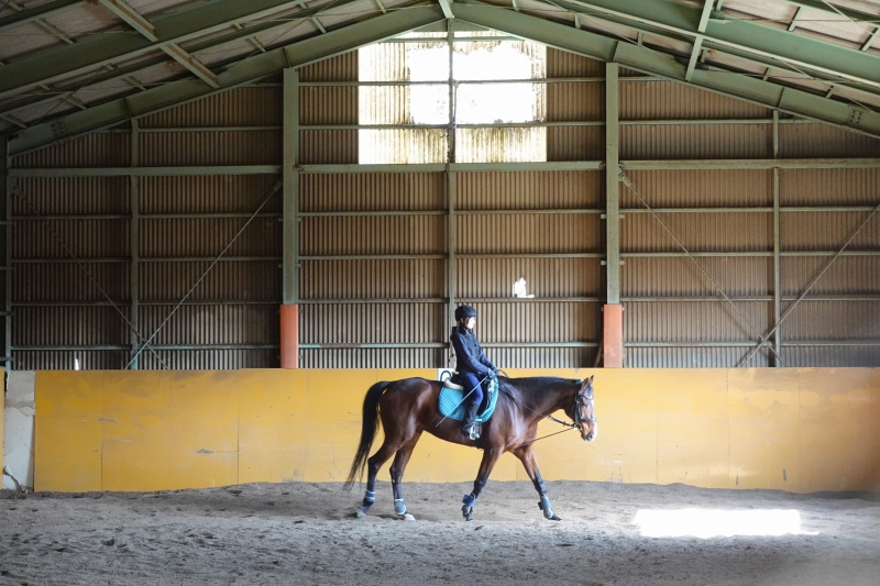 乗馬の本場ドイツのように、馬とのふれあいが身近になることを目指している「えにしホースパーク」。施設では初心者でも乗馬の魅力にふれることができる“体験乗馬“や、馬と一緒に施設周辺などを散策する引き馬、上級者も楽しめる乗馬レッスンなどを行っています。
