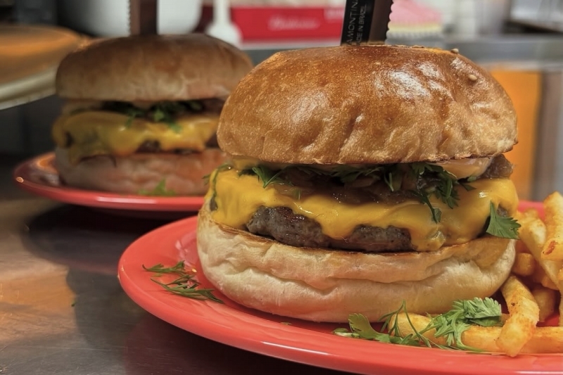 そのほかにも1番人気の「ベーコンチーズバーガー」(1,800円)や「プルドポークサンド」(1,350円)など多彩なメニューがラインナップ。また、キッズメニューや愛犬用のハンバーガー、さらに日本未発売のドリンクなどユニークなメニューも揃っています。