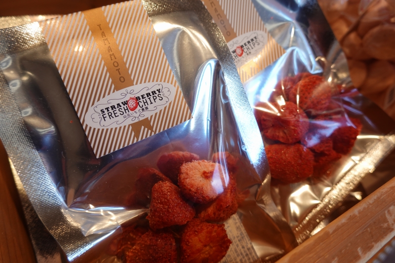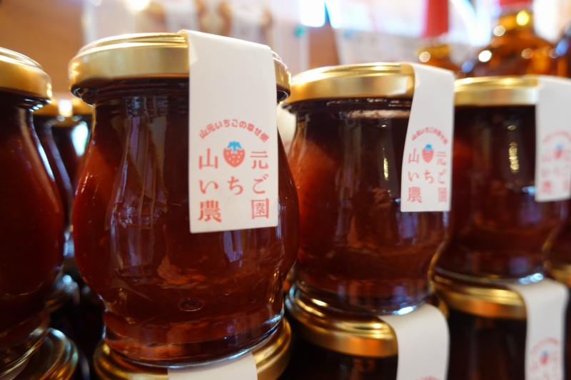 また、農園のショップでは、とれたての新鮮ないちごを直売しており、タイミングが合えば、希少な“白いちご”に出会えることも。いちごの風味を生かした加工品も豊富で、甘みをぎゅっと閉じ込めた「いちごジャム」や「いちごチップス」、子どもから大人まで楽しめるいちごのお菓子などが並びます。