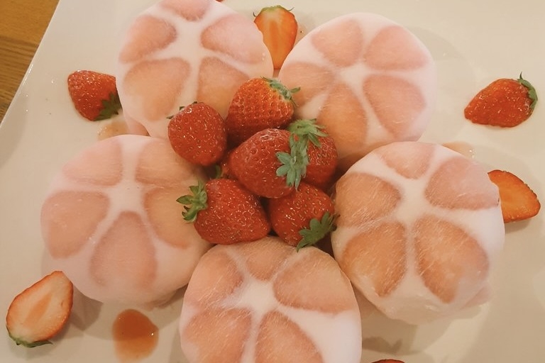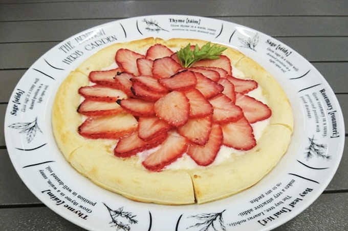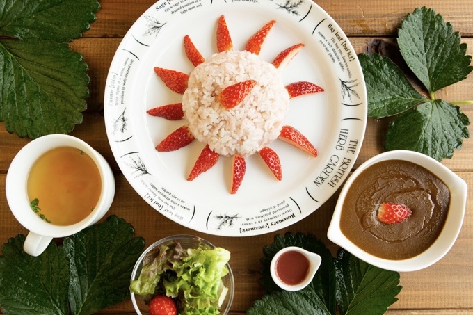 「山元ツリーいちごパフェ」(1,200円)は、見た目の華やかさと満足感のある食べ応えで一番人気。大きないちごが丸々1個入った「桜大福」(390円)、凍らせたいちごを贅沢にそのまま削った「まるごといちごかき氷」(720円)などもおすすめ。ランチタイムには「特製いちごカレー」(1,000円)や「特製いちごピザ」(1,200円)など、意外性のあるメニューも好評です。