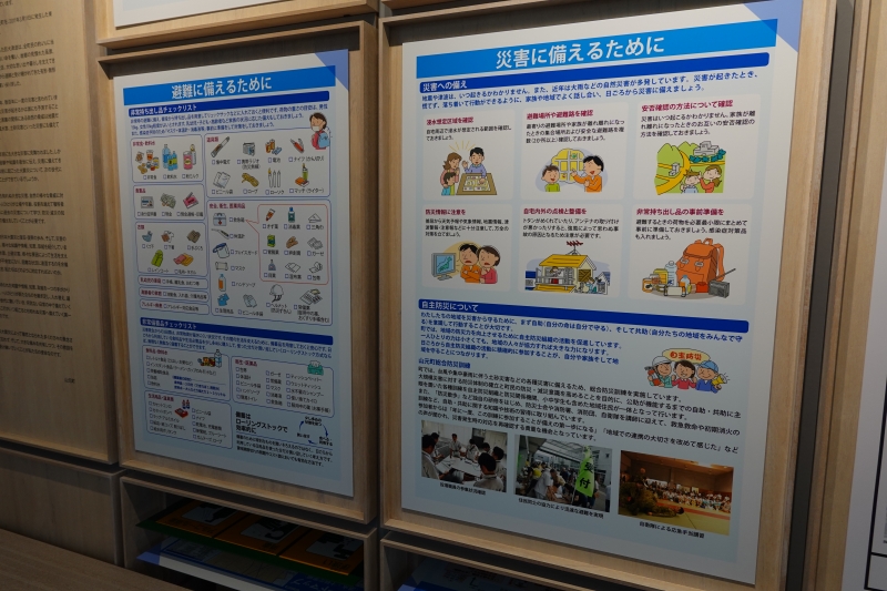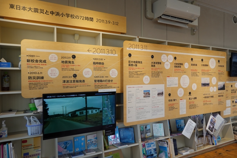 2階の音楽室や図書室は展示室として活用され、震災当日の映像や証言、かつての町並みや災害情報、学校の記憶を伝える展示が並びます。災害時にどのような判断や行動が求められるのかを、立ち止まって考えることができます。