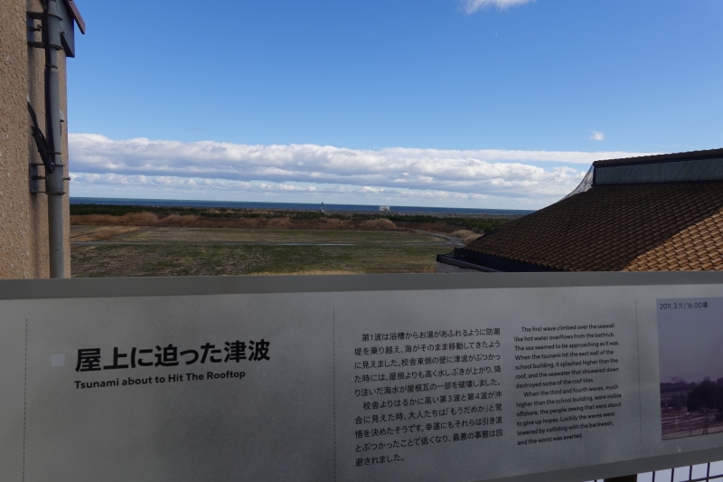 また、屋上へ上がると、海を望むことができます。震災当時90人が実際に避難し、翌朝自衛隊のヘリコプターに救助されるまで一夜を過ごした屋根裏の倉庫も、当時の状態のまま残されており、見学が可能です。