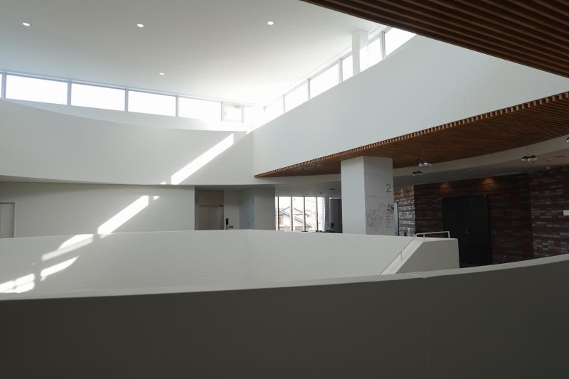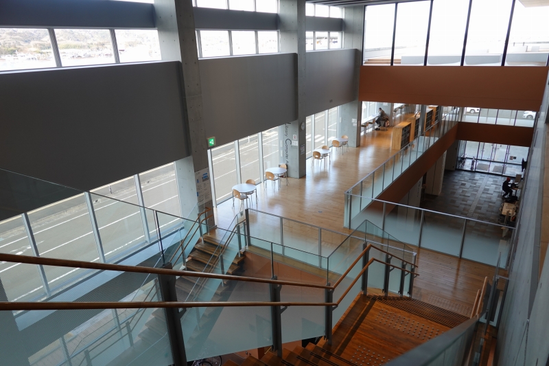 坂元地区のふるさとおもだか館に続き、町内2つ目の防災拠点として2017年10月に誕生したのが、JR常磐線・山下駅の目の前に立つ「山元町防災拠点・山下地域交流センター(つばめの杜ひだまりホール)」です。愛称は、2016年当時の山下中学校(現・山元中学校)の生徒のアイデアから生まれたもので、「ここを利用する人の心が、ひだまりのようにあたたかくなる場所であってほしい」という願いが込められています。その名のとおり、館内には世代や目的を問わず利用できる、明るく開放的な空間が広がっています。