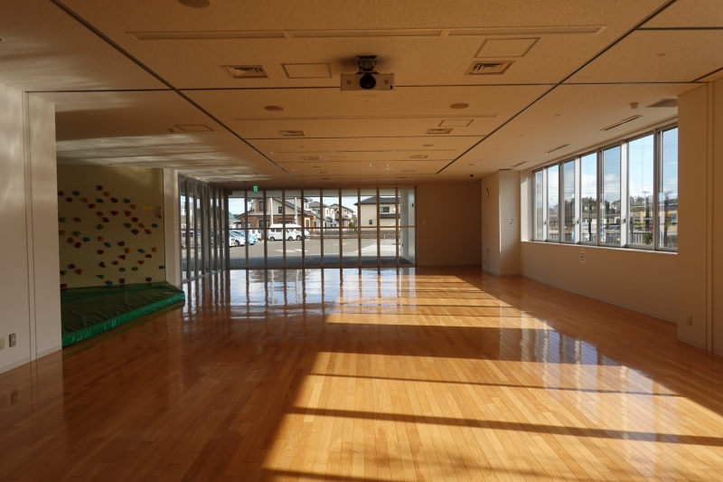 イベントスペースには、子ども用のクライミングウォールが設置されているほか、展示パネルやスクリーン投影、音響設備を備えています。