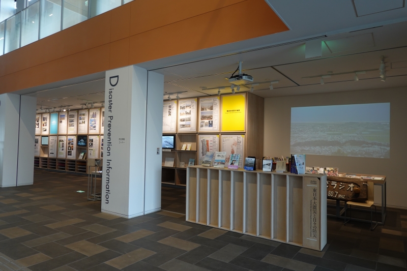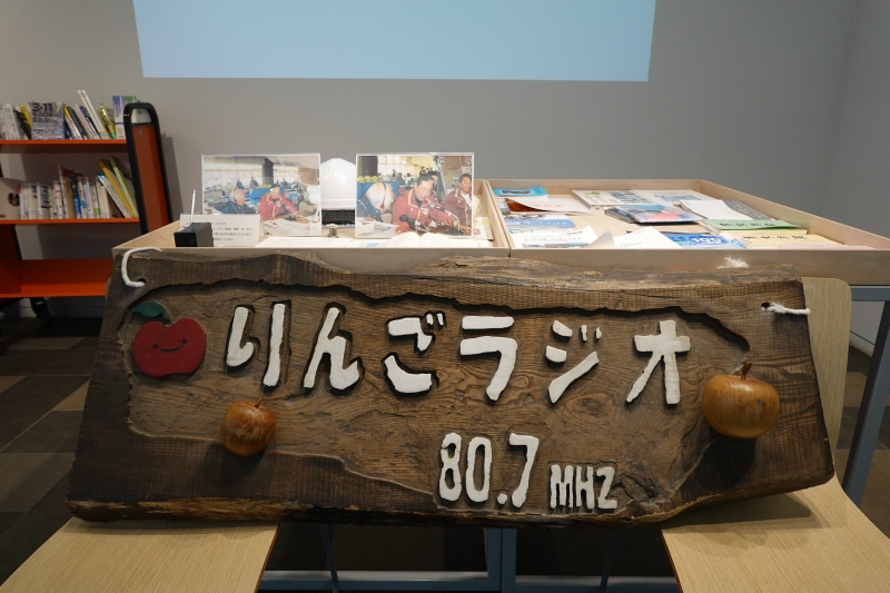 同じく1階には、防災拠点ならではの「防災情報コーナー・ギャラリー」を設置。東日本大震災当時の状況や復興の歩みを、映像・写真・パネルなどで紹介しています。震災から10日後に立ち上げられ、地域の人々を支えた臨時災害放送局「りんごラジオ局」の看板など、貴重な資料も展示されており、災害の記憶や教訓を次の世代へ伝える場となっています。大規模災害時には、情報発信の拠点として地域に必要な情報を共有できるようになっています。